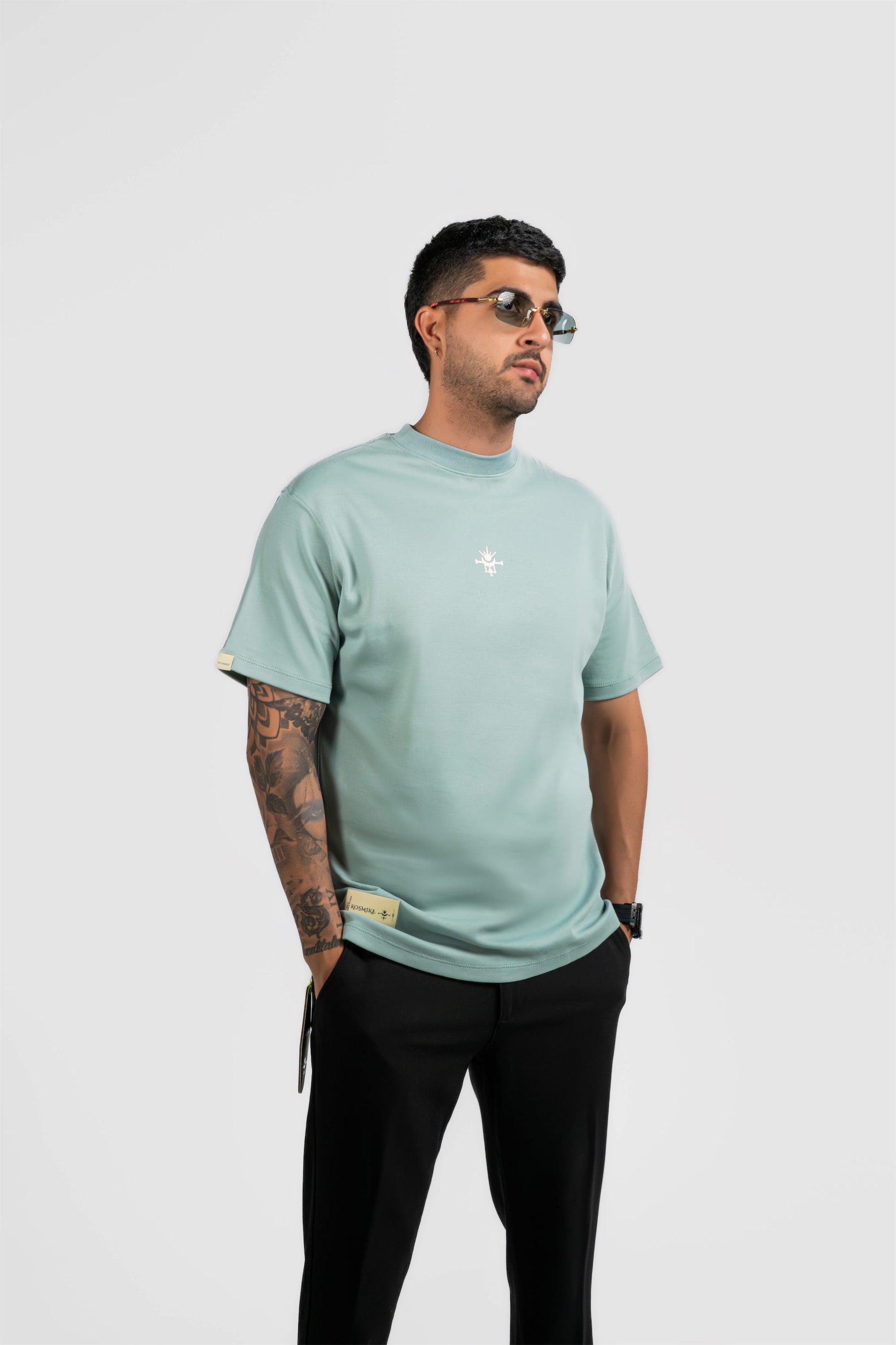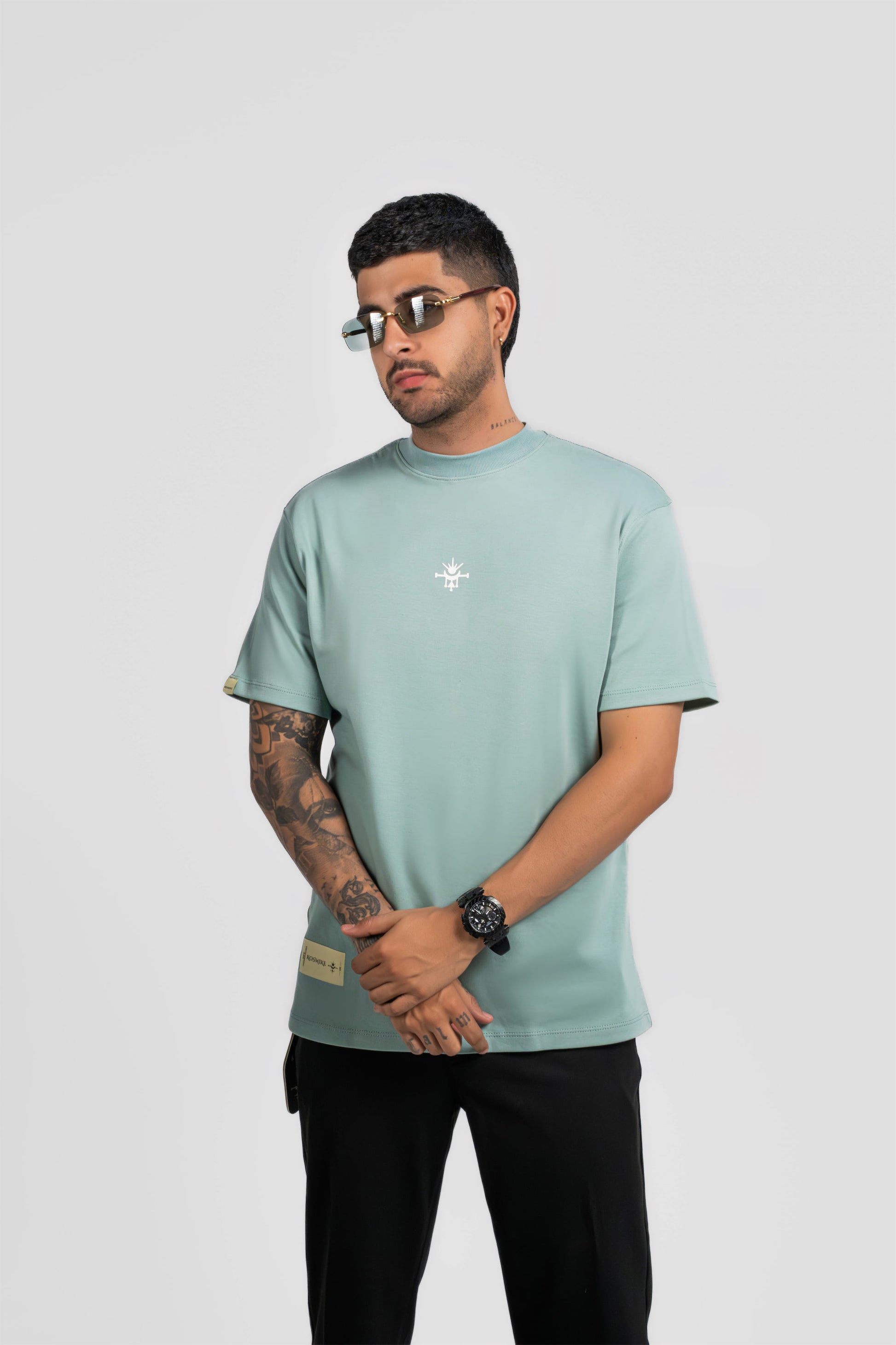 Una camiseta oversize de algodón peruano 295g que fusiona comodidad, caída perfecta y acabados premium, mientras integra gráficos con alta densidad y policromía que elevan la experiencia visual. Kosmike no viste el espacio como lo conoces, lo reimagina.